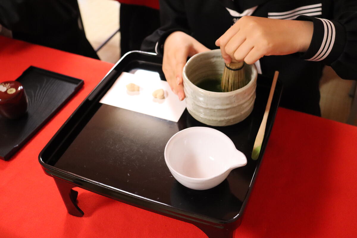 最初の茶道体験では少し苦いお茶に苦戦しながらも、日本の伝統文化に触れてくれました。