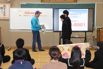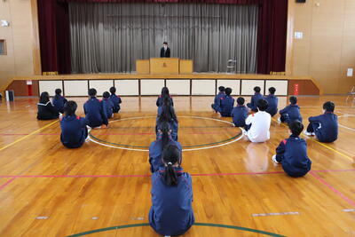 本日、米原警察署・交通課の方にお越しいただき、1年生の交通安全教室を実施しました。