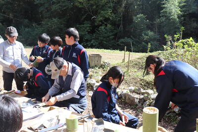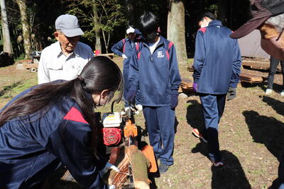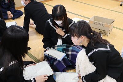 その後、学年ごとに分かれ、1年生は避難所設営訓練、デイサービスセンターはびろの方との合同避難訓練、2年生は救命救急講習と消火訓練、そして3年生は炊き出し訓練を行いました。