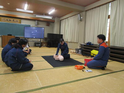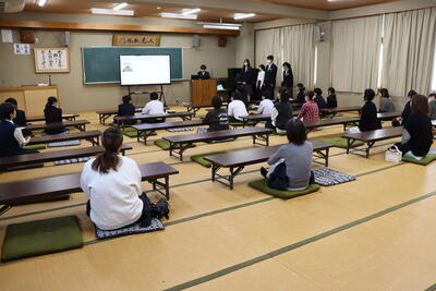 本校は災害時の指定避難所になっているため、もしもの時に、地域の方と協力して活動をできるように、講師として米原消防署、防災危機管理課をお招きし、デイサービスセンターはびろにもご協力をいただきました。