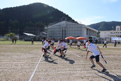柏中祭(体育の部)開催! 投稿: 柏原中学校 (17:52) カテゴリー: 学校行事 本日、延期になっていた柏中祭(体育の部)を開催しました。 天候にも恵まれ、絶好の体育祭日和となりました。 もともと午前中半日の予定だったため、障害物競走、しっぽとり、全員リレーとそれほどたくさんの内容があるわけではありませんでしたが、生徒達は全ての競技に笑顔で、そして全力で取り組んでくれました。 明日は文化の部です。 生徒の皆さん、明日も全力で頑張りましょう!