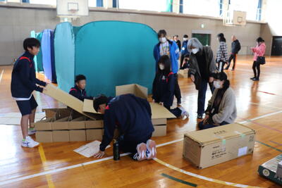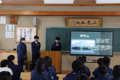 最初に自身を想定したシェイクアウト訓練を行い、次に防災危機管理課の方より、米原市を取り巻く災害の状況等について講話をいただきました。