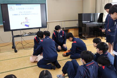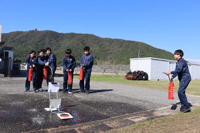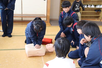 その後は2年生は消防署の方より救命救急講習、消火訓練を行っていただきました。
